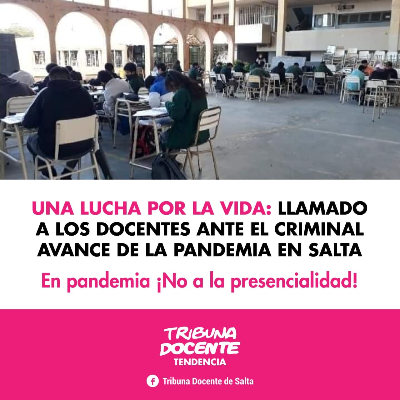 UNA LUCHA POR LA VIDA: LLAMADO A LOS DOCENTES ANTE EL CRIMINAL AVANCE DE LA PANDEMIA EN SALTA